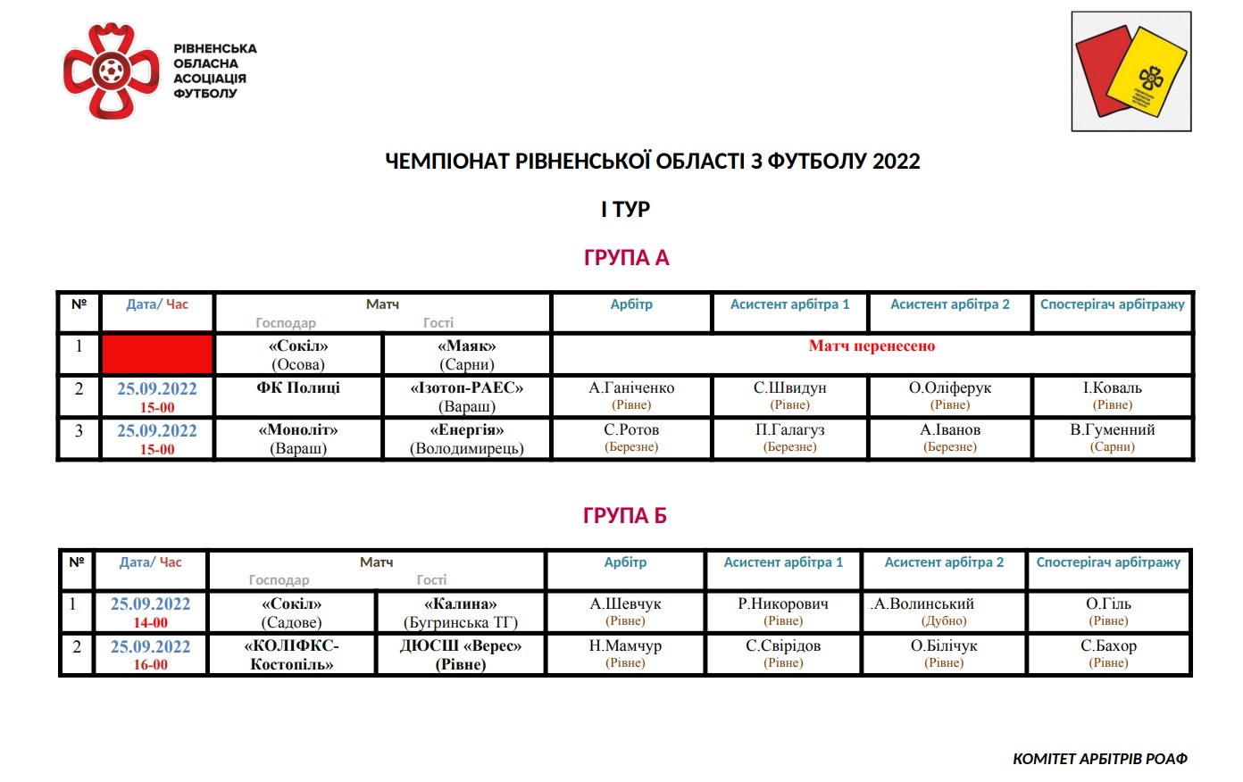 Розклад та призначення арбітрів на перший тур Чемпіонату області